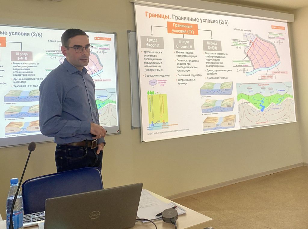 Программа обучения (24 ак. ч) включала изучение широкого спектра тем, таких как обзор основных методов гидрогеологических исследований и применяемого оборудования, подходы к организации мониторинга. Отдельный блок был посвящен численному гидрогеологическому моделированию как основному инструменту для прогнозных расчетов; рассмотрен софт Modflow Classic и Ansdimat. Представлены основные методы осушения, применяемые в горнорудной отрасли.