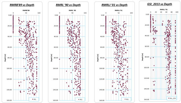 По результатам собранной информации специалисты СМТ рассчитали рейтинговые показатели. Эти данные станут основой для построения литолого-структурной модели и блочной геомеханической модели, а также будут использованы при проведении расчётов устойчивости откосов и бортов карьера.